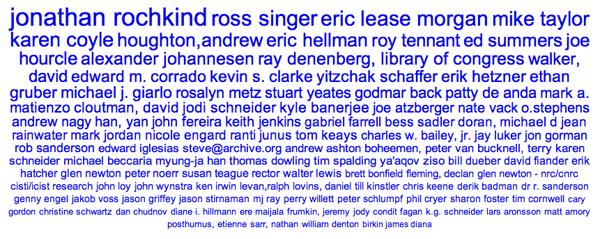 Just as importantly, Jeff wanted to know about open source licensing. I had not explicitly licensed the software, something that I only learned was necessary from Dan Chudnov later. After a bit of back and forth, the original source code was supplemented with the GNU Public License, packaged up, and distributed from a Git repository. Over the years the User’s Group had modified it to overcome a few usability issues, and they wanted to distribute the source code using the most legitimate means possible.